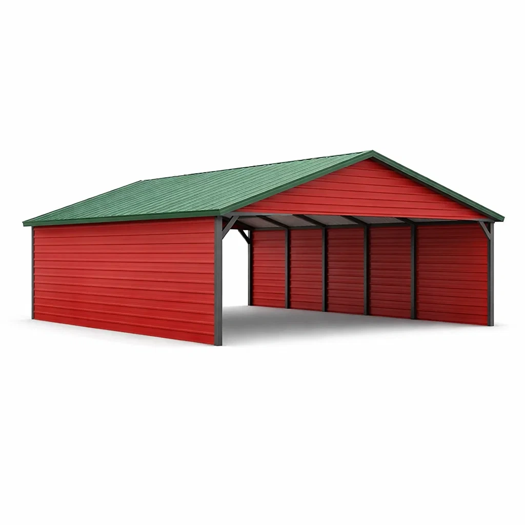 Abri pour voiture en métal rouge et vert