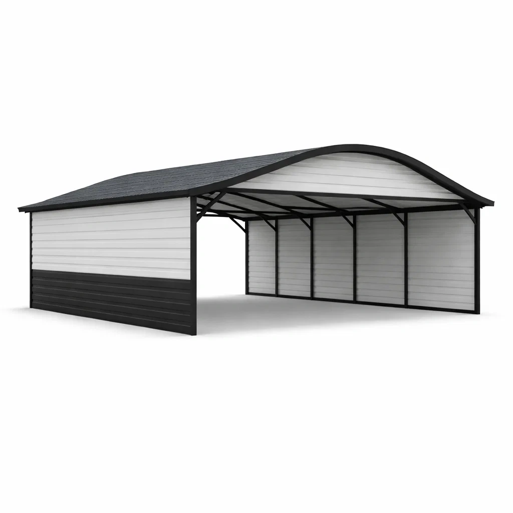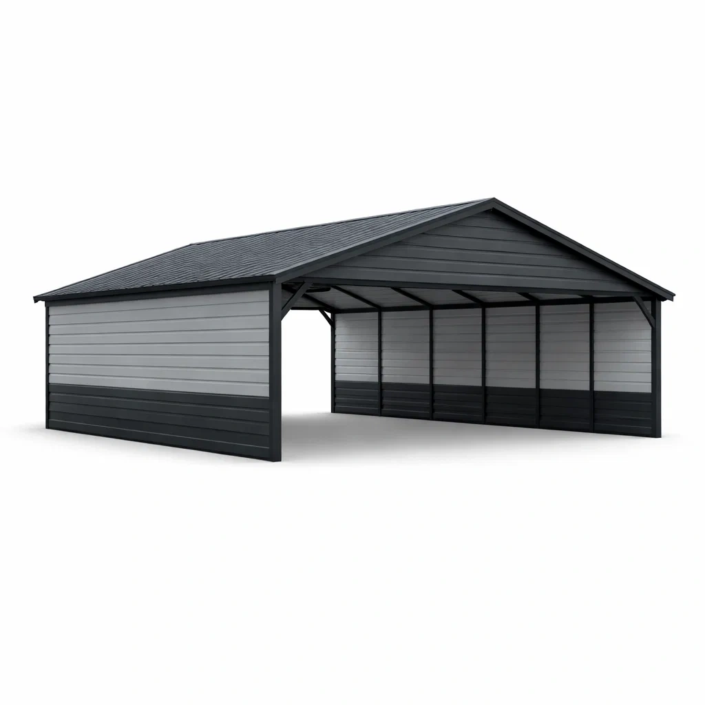 Abri pour voiture en acier noir et blanc