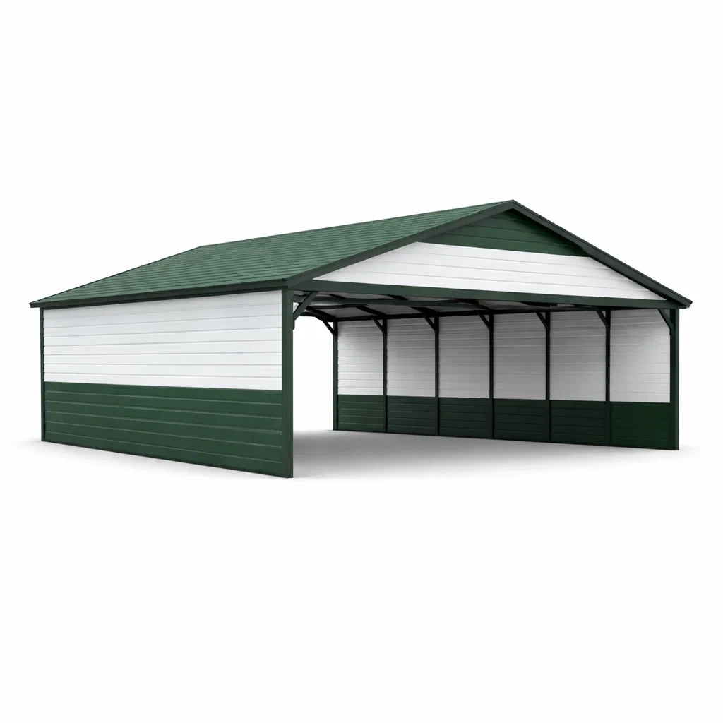 Abri pour voiture métallique vert et blanc