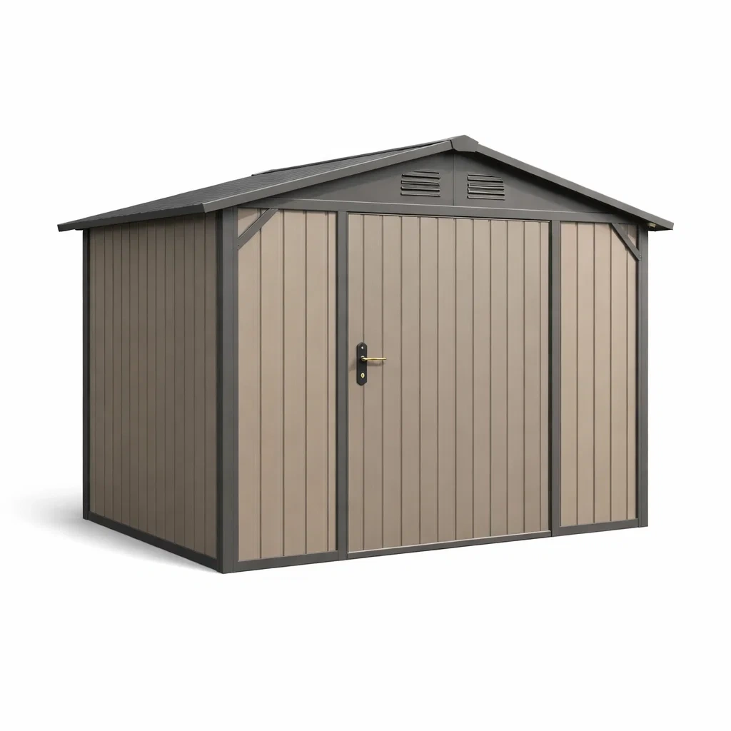 Abri de jardin en acier galvanisé conçu pour la robustesse et la durabilité.