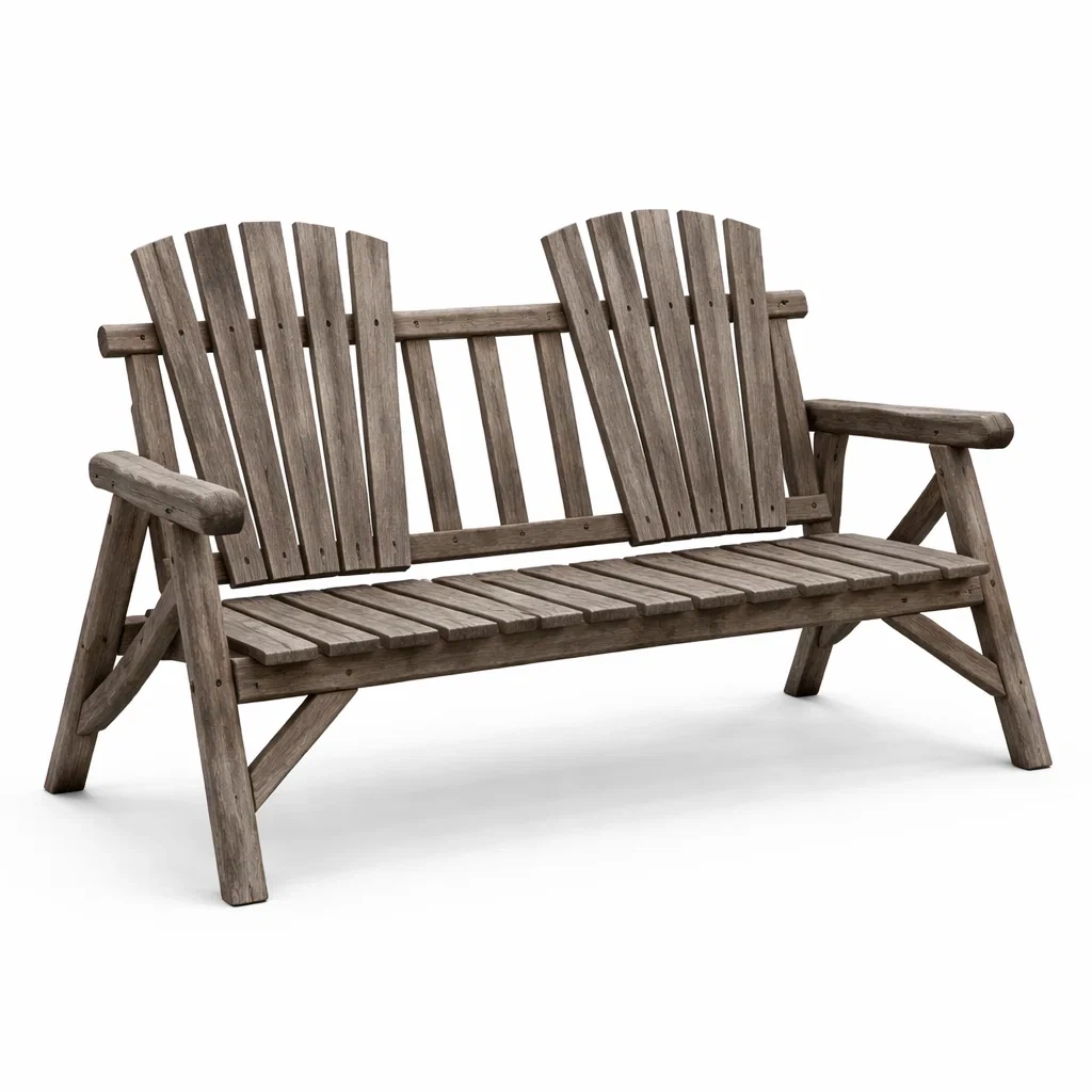 Ce banc de jardin est fabriqué en bois de chêne massif avec un design rustique. Il est équipé d'un dossier incurvé et d'accoudoirs robustes.