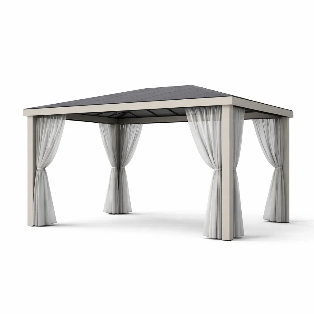 Pavillon de jardin en aluminium avec toit en polycarbonate et rideaux en polyester
